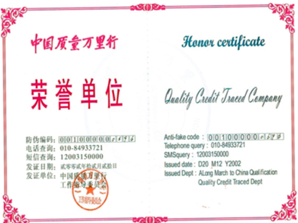 中國(guó)質(zhì)量萬(wàn)里行榮譽(yù)單位